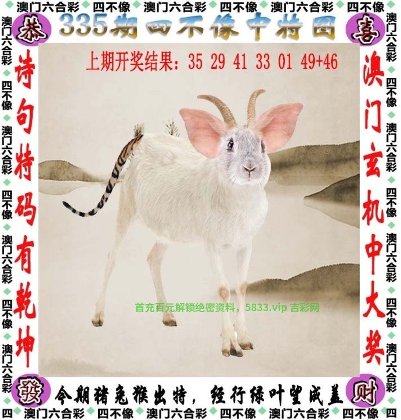 | 335期:必中七肖→狗虎猴龙兔羊鸡←开:狗44准 |